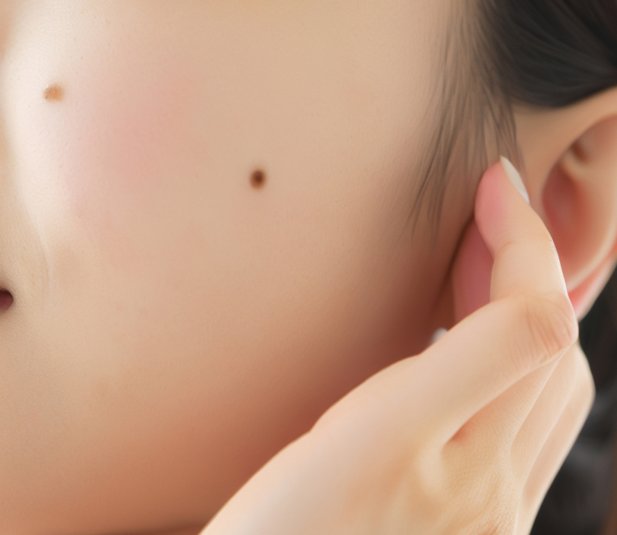 ほくろは遺伝、紫外線、ホルモンバランスなどさまざまな要因で発生し、ゆっくりと色や形が変化していきます。
