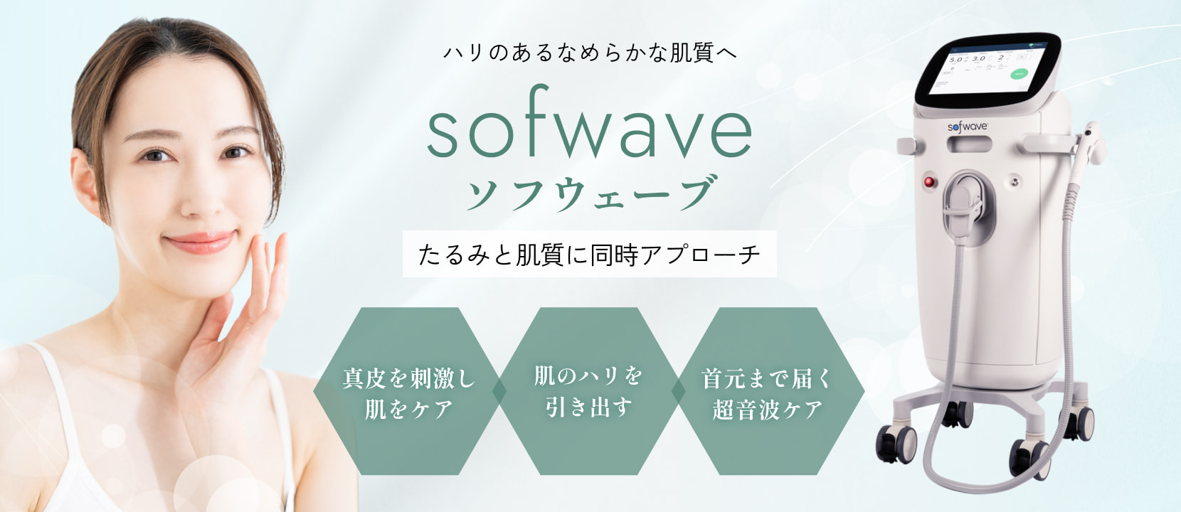ソフウェーブは顔や首の皮膚の「たるみ」と「肌質」の改善を目的とした最新超音波治療器です。